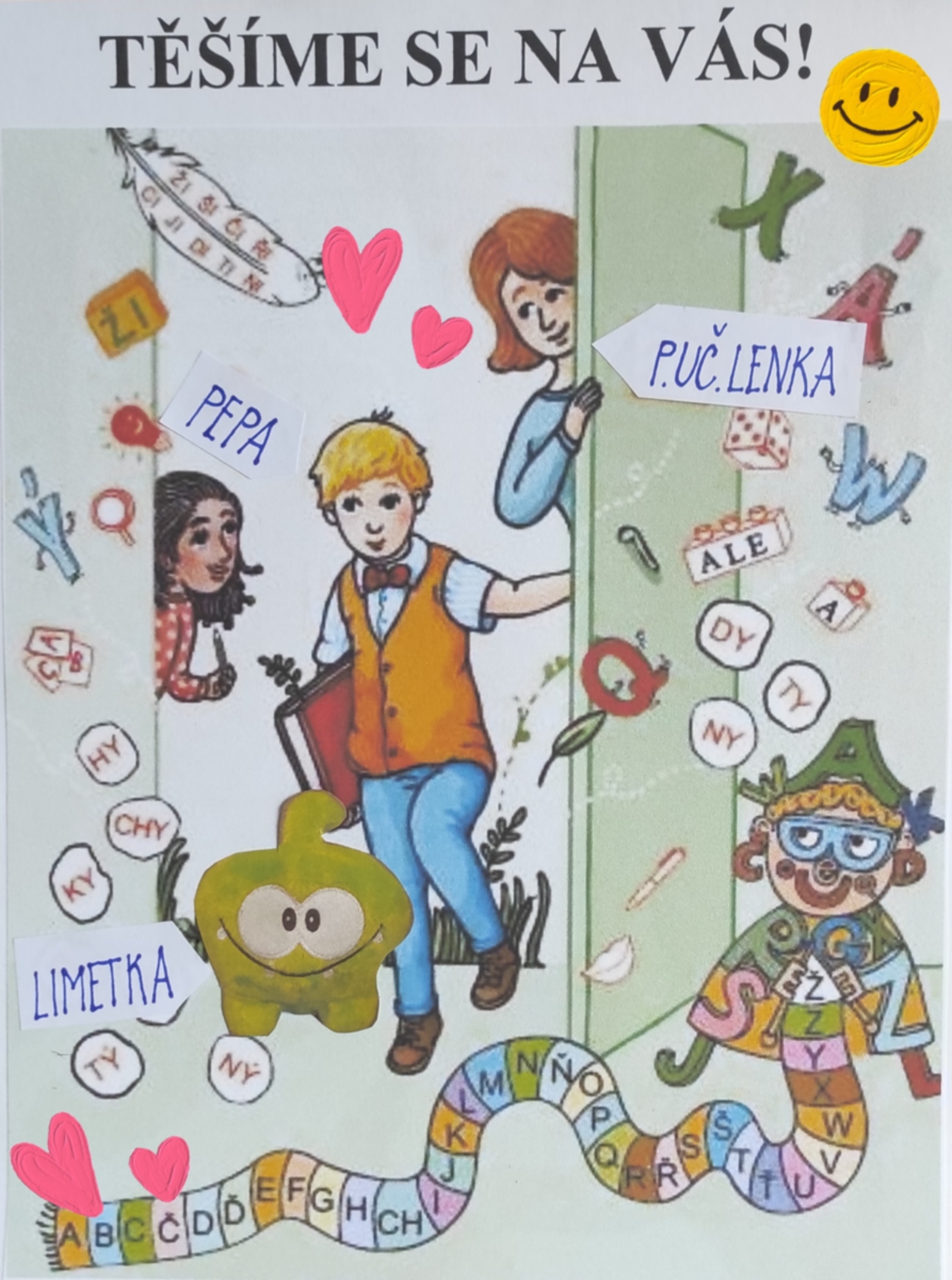 Milé "příšerky". Konečně mohu prozradit tajemství, že nás bude ve 2.třídě o jednoho více. Kdo to bude? Holka nebo kluk? Nebo snad nějaké zvířátko? Je to kluk jako buk. Kamarád Pepa, který nám bude pomáhat a učit se s námi. Je neobyčejný a bude na nás koukat z učebnic. Určitě nám bude veselo a zažijeme rok plný poznání a pohody. Tak až zítra, 1. září půjdete z domu, vykročte pravou nožkou a nezapomeňte na dobrou náladu🙂 Protože my tři, Limetka, Pepa a já se na vás moc a moc těšíme. Tak hurá do školy!