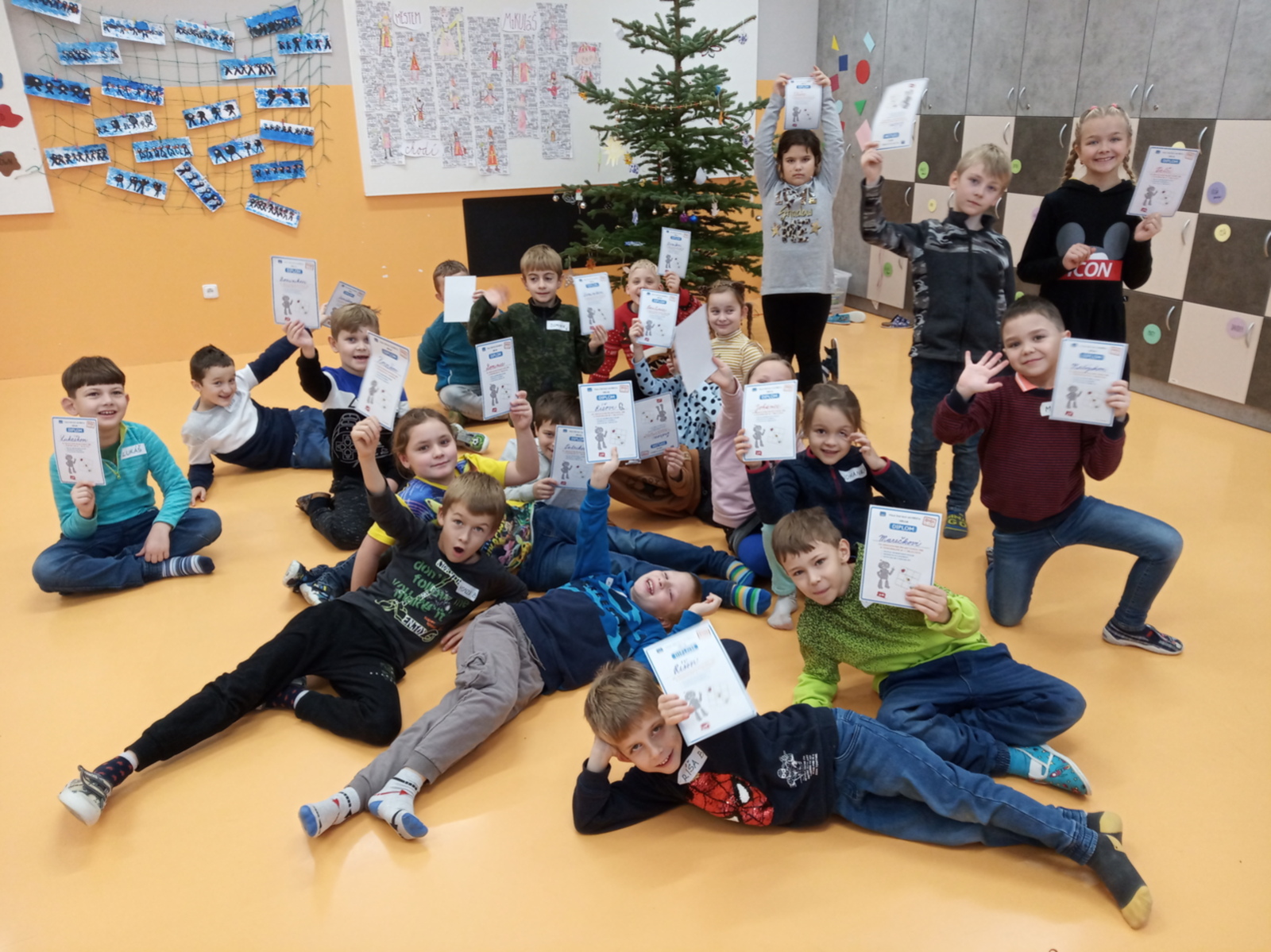To jsme se dnes divili, kde všude jsou schované počítače a proč je výhodné je používat. Vyzkoušeli jsme si logické hry na čtvercových sítích, ve skupinách jsme tvořili stavby z kostek a zahráli jsme si na roboty, kteří zvládnou pohyb po souřadnicích. Za svou snahu jsme si vysloužili diplomy. A posíláme i pozdrav naší paní učitelce.