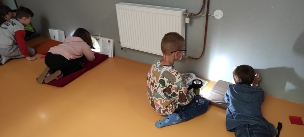 Dnešní den byl ve znamení světlušek. Z části jsme jej prožili s baterkou. Nešel elektrický proud, tak jsme si na čtení a přírodu posvítili. Že baterka pomáhá spíše ve tmě víme, ale dnes nám ukázala, že umí kouzlit i v přírodě. Zkoušeli jsme svítit na kůru, kmen, listí, rostliny... Čtení ve dvojicích, kdy jeden svítil do knihy druhému bylo velmi zajímavé. Moc nás to bavilo. Zbystřete zrak a pozorně hledejte všechna světýlka.