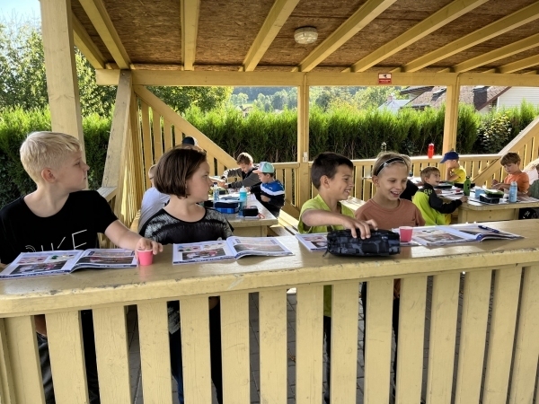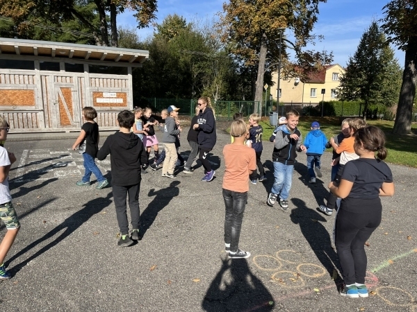 Využili jsme krásného počasí a vyrazili na hodinu anglického jazyka ven. Třeťáci už toho totiž spoustu umí 😊. Zahráli jsme si anglické hry, při kterých jsme zopakovali probíranou slovní zásobu, zahráli bingo nebo ve dvojicích vedli krátký rozhovor.