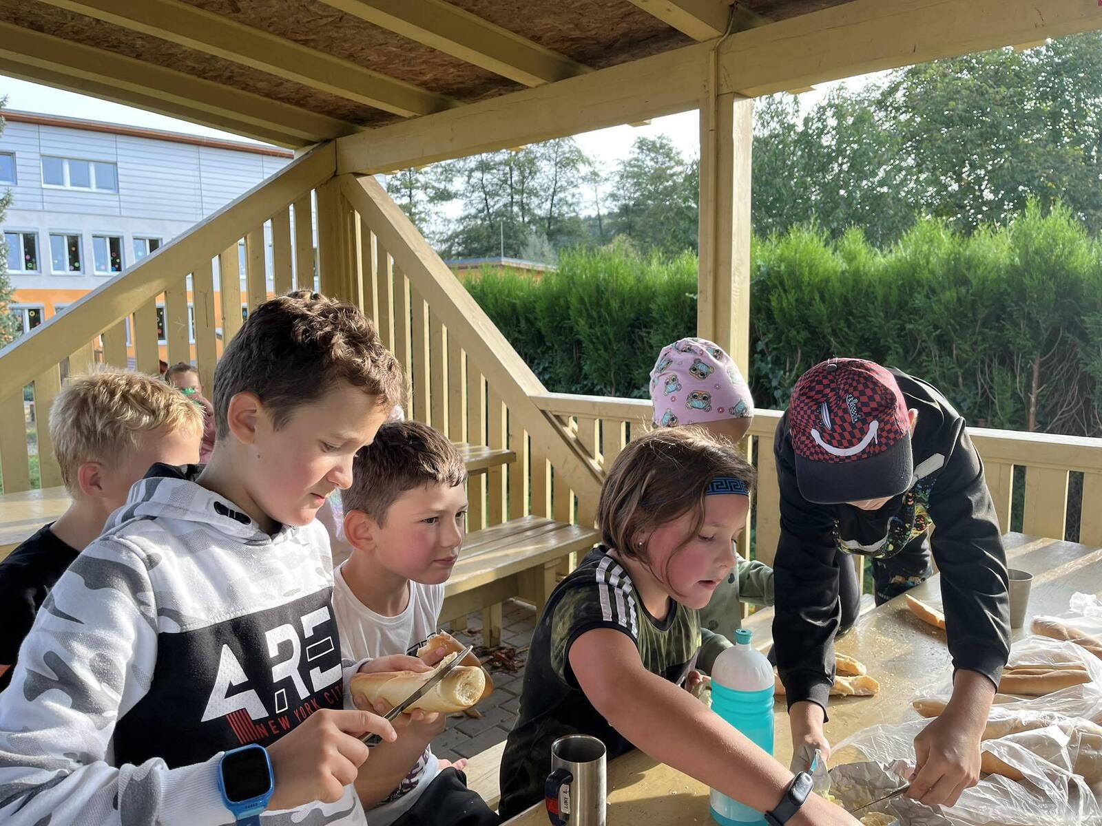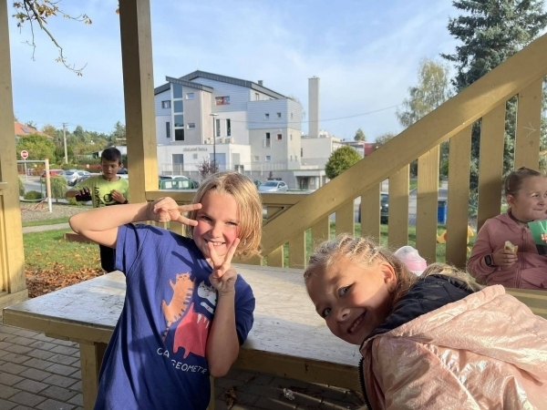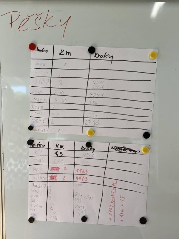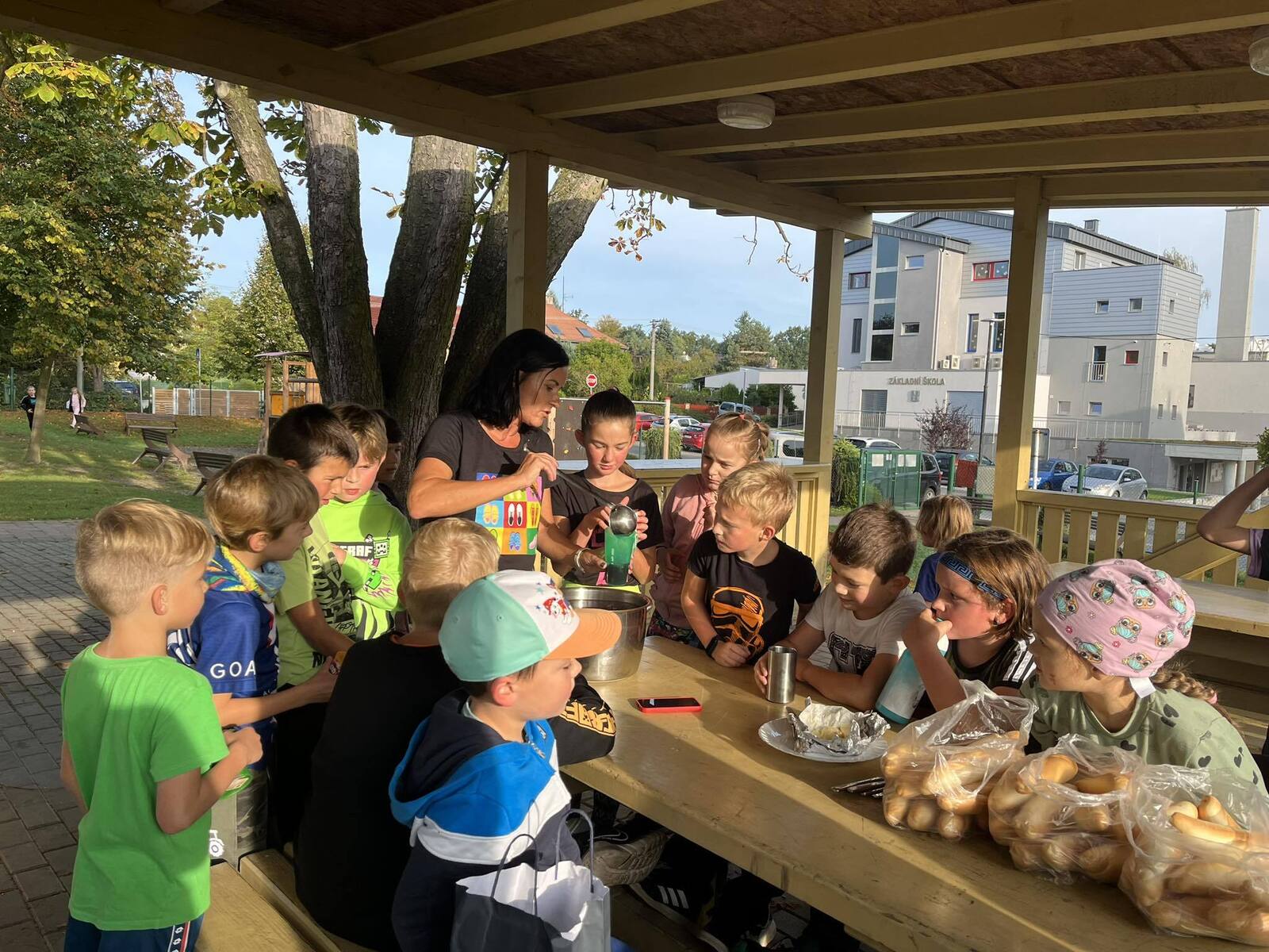 I se třeťáky jsme se vypravili do školy bez automobilů. Zapojili jsme se tak do projektu "Pěšky do školy", který má za cíl seznámit děti se zábavnou variantou cestování do školy, o kterou díky automobilové dopravě přicházejí. Abychom si to ťapkání trošku prodloužili, dali jsme si navíc ještě běh dlouhý přes 1,5 km! Odměnou nám byla společná snídaně, protože láska k pohybu určitě také prochází žaludkem;-)