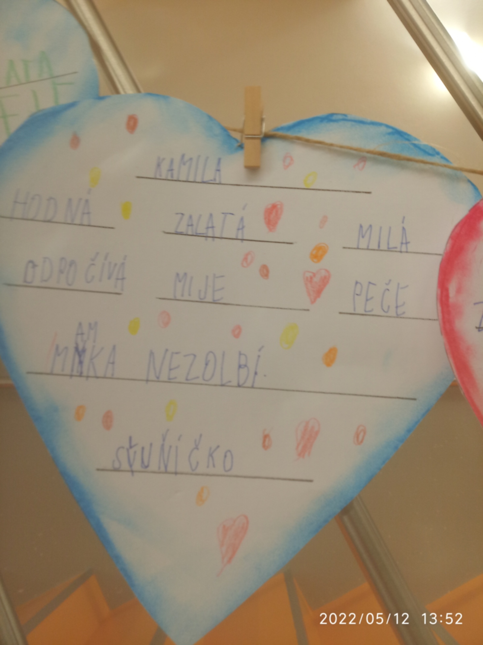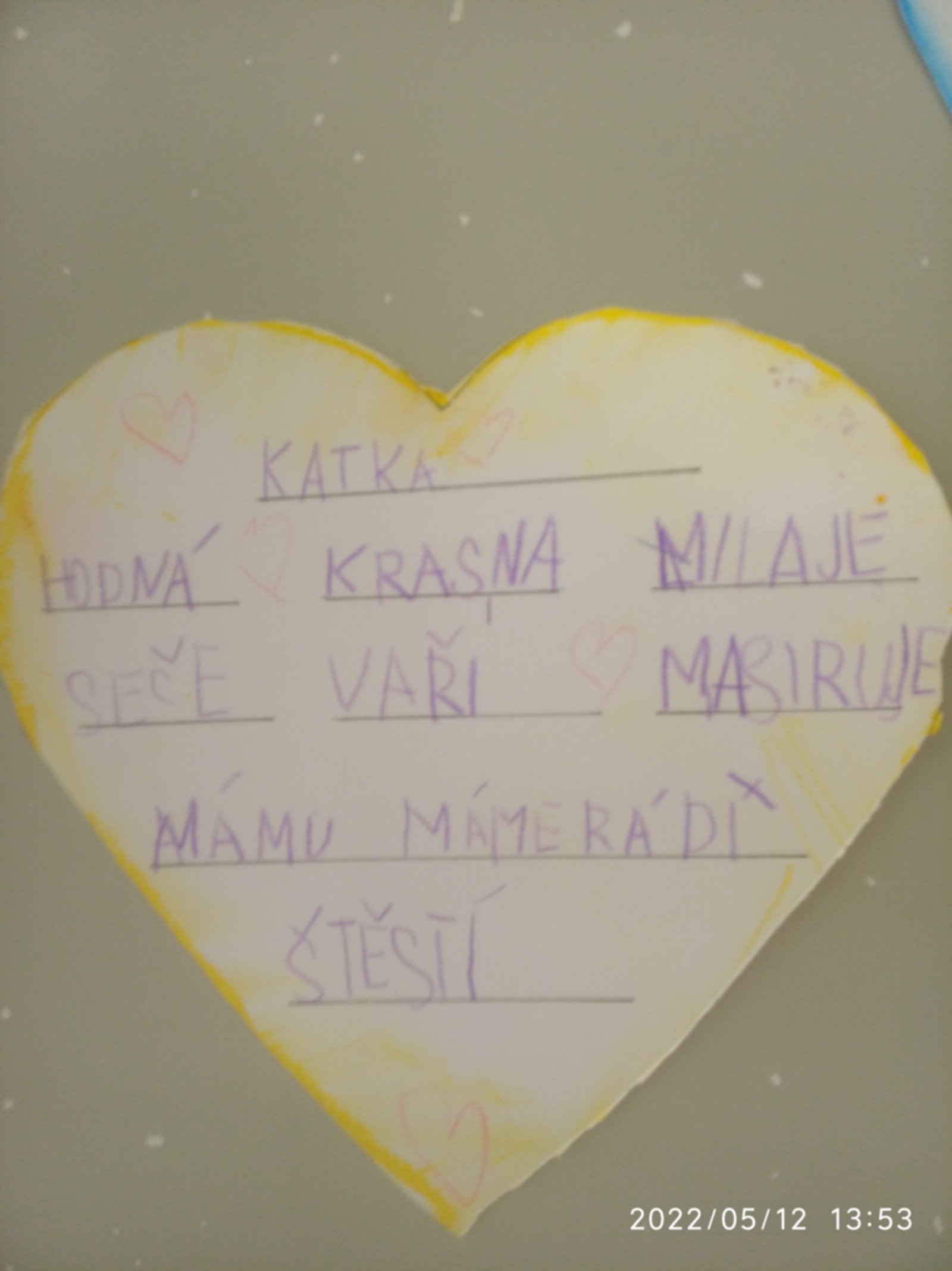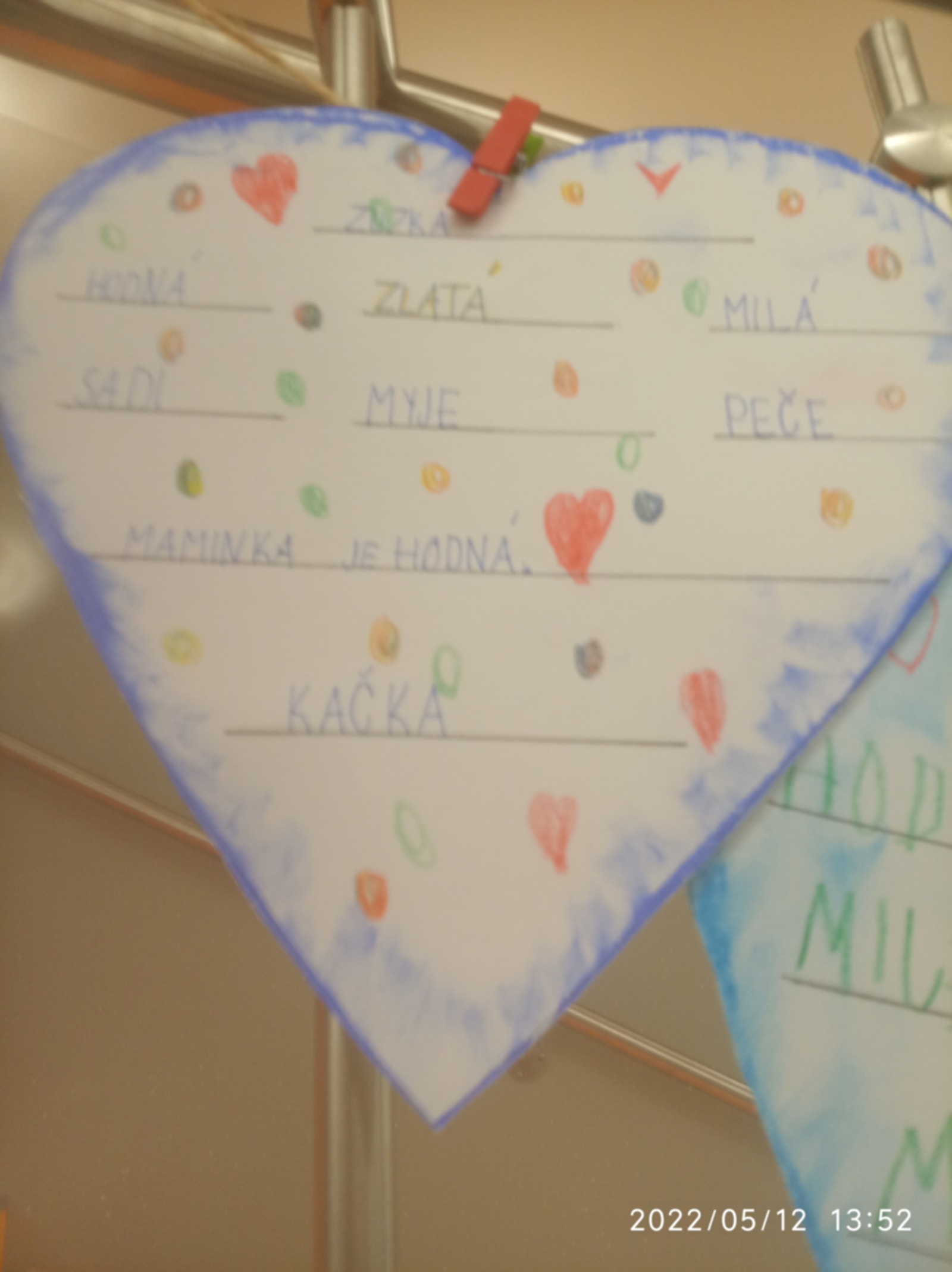 Ve středu si děti vyzkoušely metodu pětilístek. Podstatou metody je dovednost shrnout stručně nějaké téma. Prvňáčci si s tímto nelehkým úkolem krásně poradili. Psali jméno maminky, jaká je, co ráda dělá, větu o mamince a co pro ně maminka znamená. Myslím, že jsou všechny pětilístky úžasné a udělají maminkám radost. A děti si zaslouží velikou pochvalu.