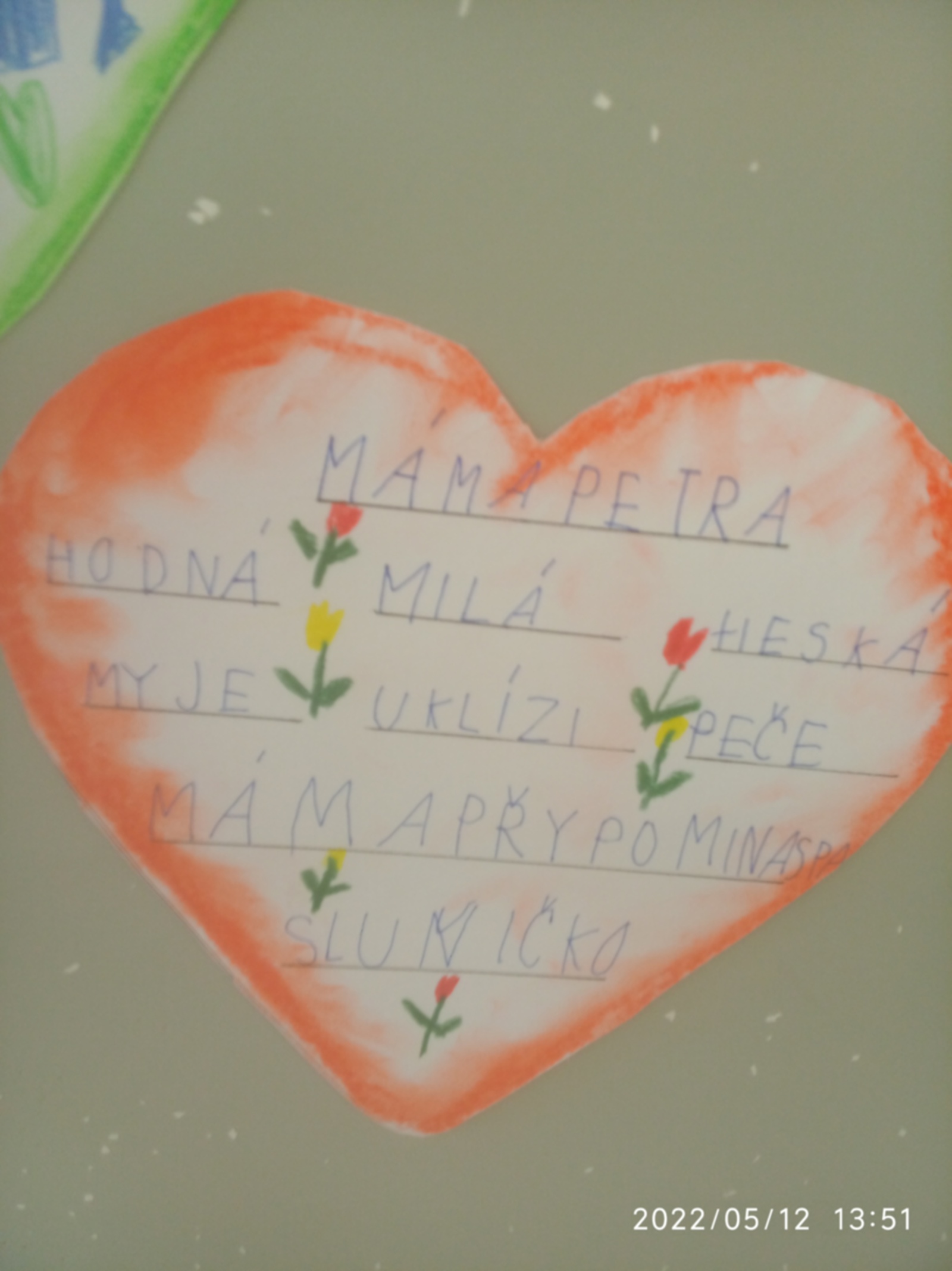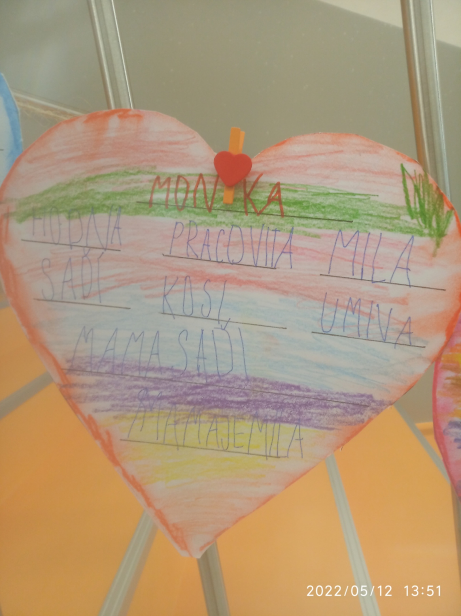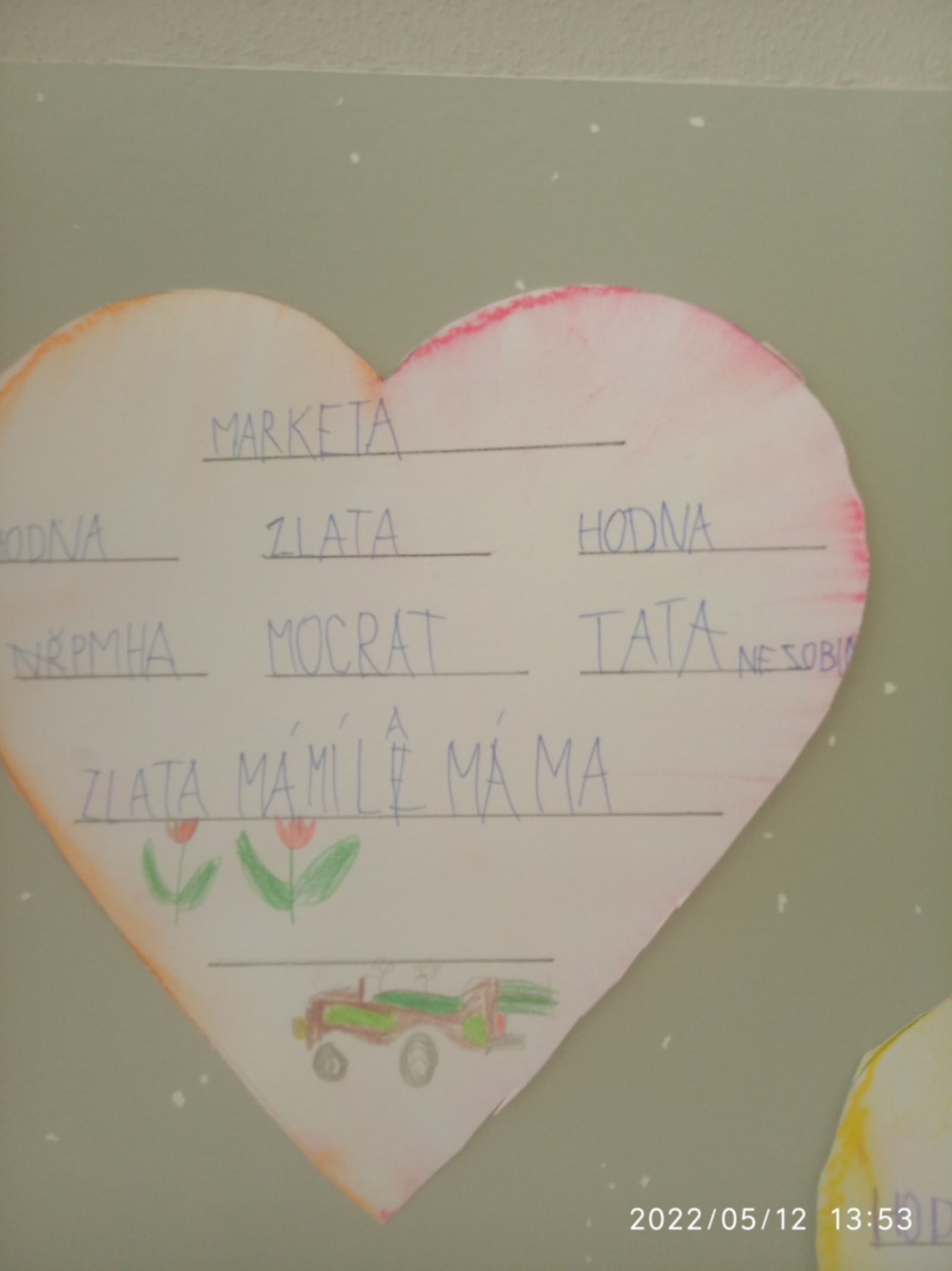 Ve středu si děti vyzkoušely metodu pětilístek. Podstatou metody je dovednost shrnout stručně nějaké téma. Prvňáčci si s tímto nelehkým úkolem krásně poradili. Psali jméno maminky, jaká je, co ráda dělá, větu o mamince a co pro ně maminka znamená. Myslím, že jsou všechny pětilístky úžasné a udělají maminkám radost. A děti si zaslouží velikou pochvalu.