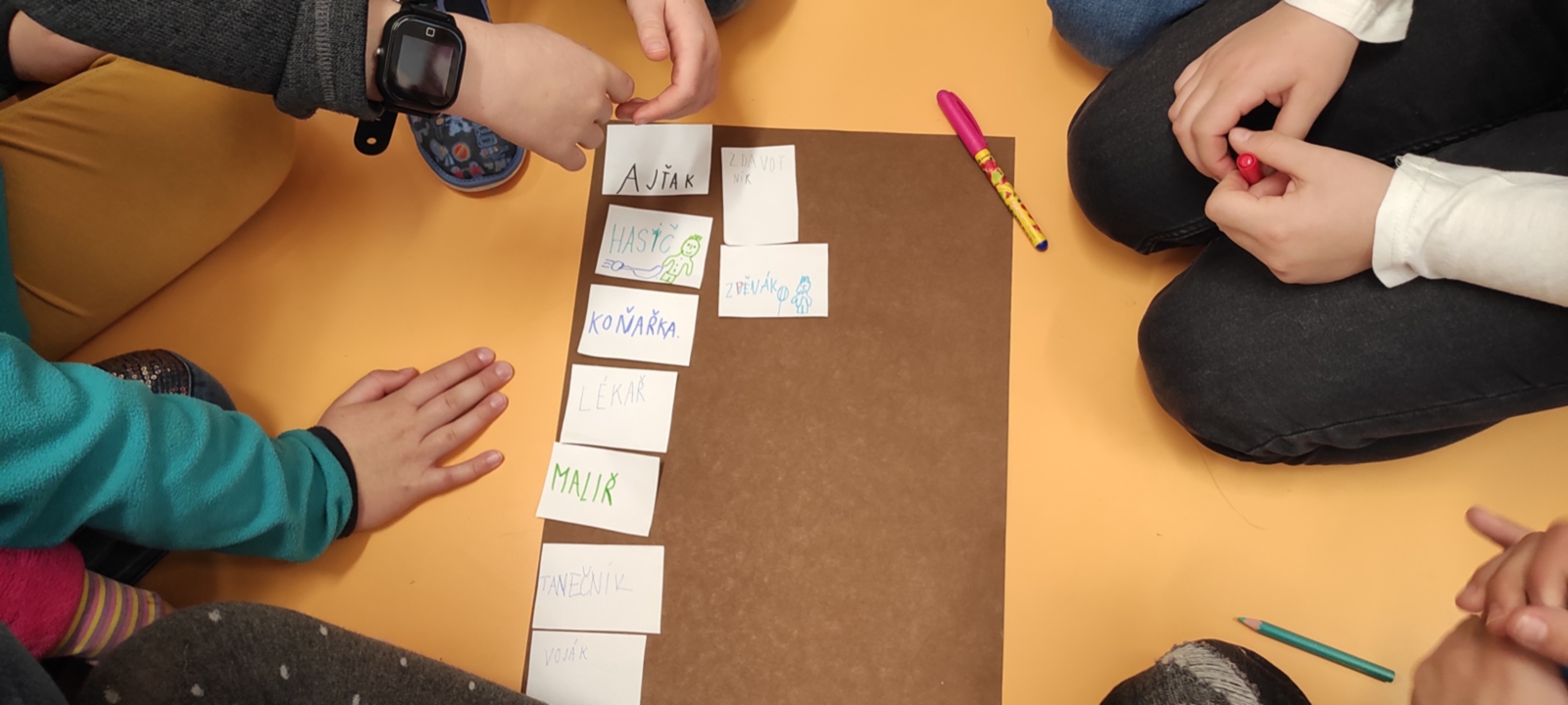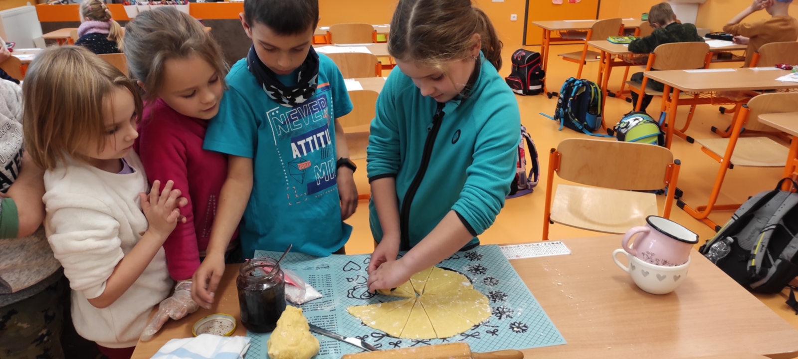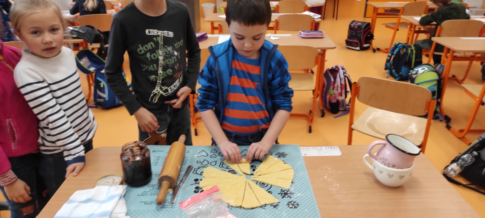 V českém jazyce se učíme slova nadřazená a podřazená a slova souřadná. A tak jsme se je naučili pomocí povolání. Hráli jsme pantomimu, hádali povolání, tvořili věty a hádanky, ve hře Sněhová koule jsme si je hezky roztřídili a nechybělo ani třídění názvu povolání podle abecedy. A abychom to završili něčím voňavým, na okamžik jsme se stali pekaři a upekli si svatomartinské rohlíčky s povidly. Že je to pozdě? No co, Martin svůj sníh přivezl také až dnes. 🙂 A jaké je tedy slovo nadřazené pro slova PEKAŘ, KUCHAŘ, UČITEL, LÉKAŘ... přece POVOLÁNÍ čili PROFESE.