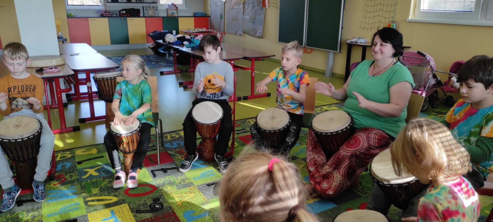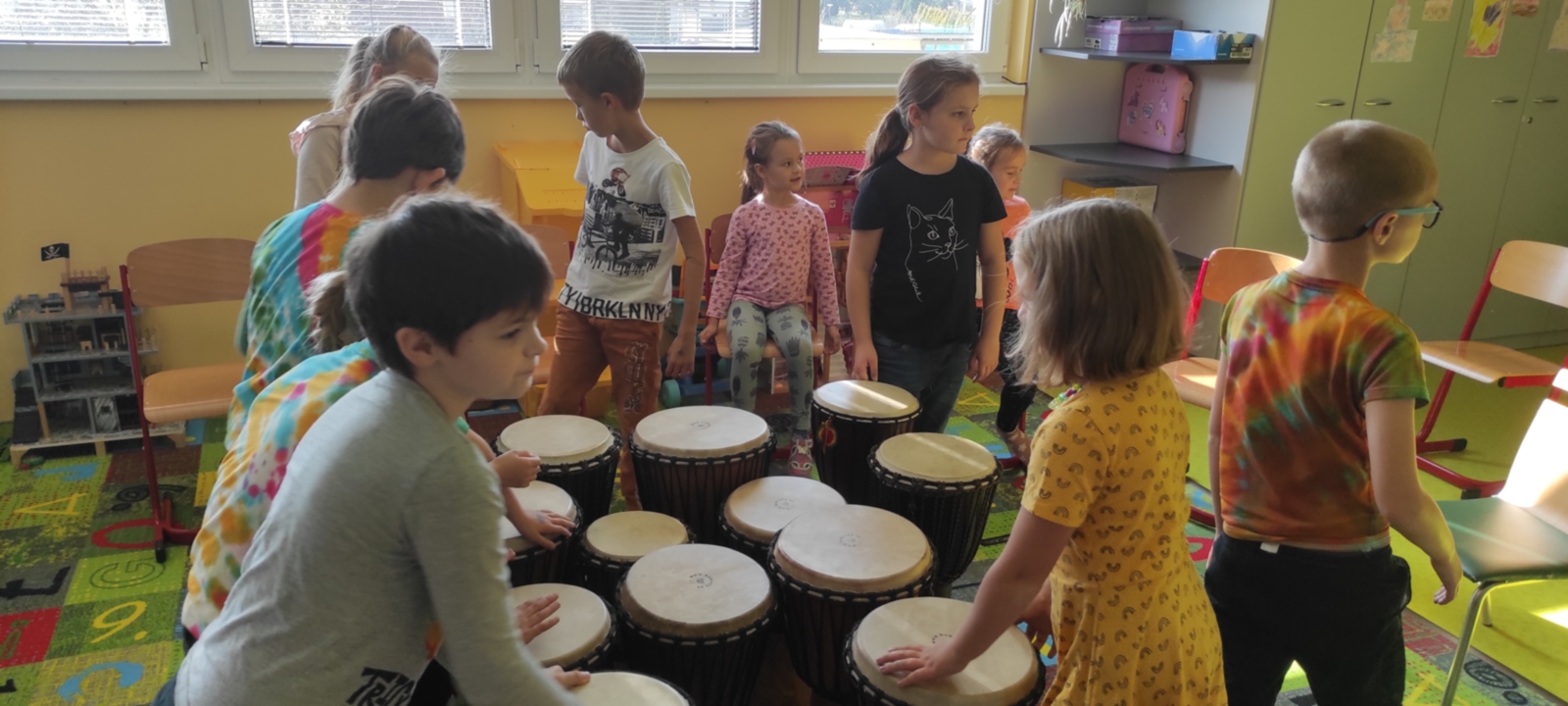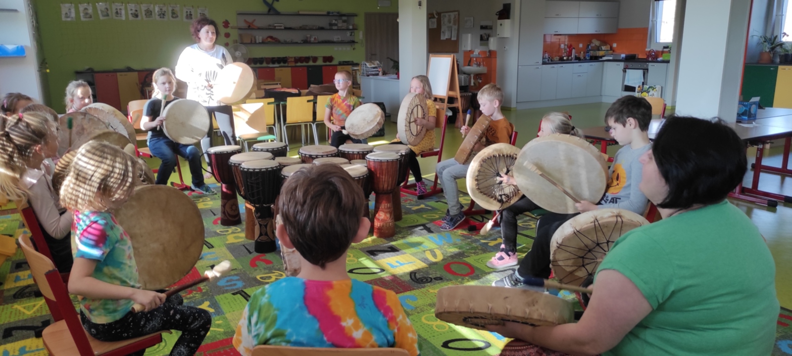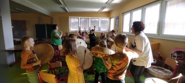 Protože si po těžké práci občas zasloužíme i odměnu, dostali jsme dnes malý dárek v podobě relaxačního a uzdravujícího bubnování. Nebyly to ledajaké bubny, ale bubny šamanské. Nejprve jsme se s bubny seznámili, naučili se je správně držet a šup do práce. Do rytmu jsme bubnovali nejprve společně, pak střídavě, a nakonec i s písničkou. Znělo to báječně, dunělo to i v našem těle a hlavně to krásně uklidňovalo. Rytmus máme každý v sobě. O tom není pochyb. Nechyběla relaxace pomocí tibetské mísy a gongu. Nádherně jsme si zahráli a odpočinuli. Jsme rádi, že nás navštívily tak úžasné lektorky bubnování. Bylo to zkrátka SUPER!