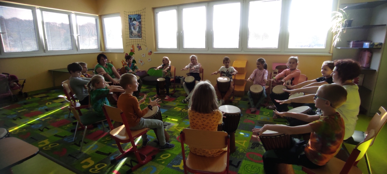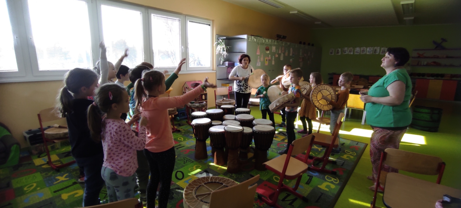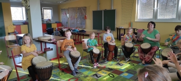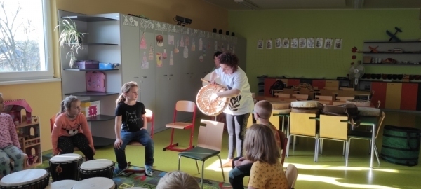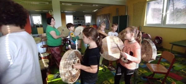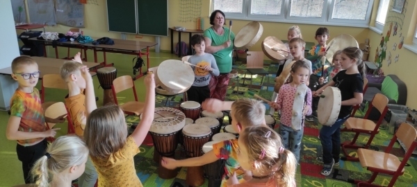 Protože si po těžké práci občas zasloužíme i odměnu, dostali jsme dnes malý dárek v podobě relaxačního a uzdravujícího bubnování. Nebyly to ledajaké bubny, ale bubny šamanské. Nejprve jsme se s bubny seznámili, naučili se je správně držet a šup do práce. Do rytmu jsme bubnovali nejprve společně, pak střídavě, a nakonec i s písničkou. Znělo to báječně, dunělo to i v našem těle a hlavně to krásně uklidňovalo. Rytmus máme každý v sobě. O tom není pochyb. Nechyběla relaxace pomocí tibetské mísy a gongu. Nádherně jsme si zahráli a odpočinuli. Jsme rádi, že nás navštívily tak úžasné lektorky bubnování. Bylo to zkrátka SUPER!