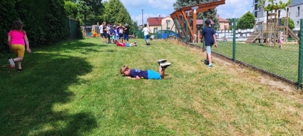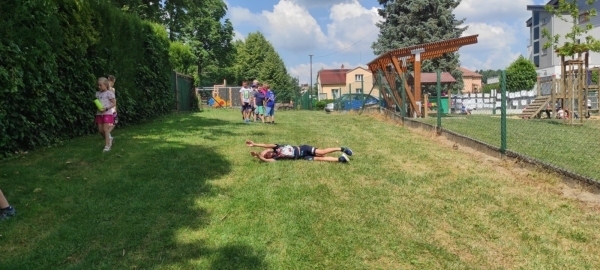 Konec školního roku a s ním odhození všech povinností nás zavedl ven na hřiště. Vše máme zvládnuto. Tak už se můžeme válet. Buď v trávě sudy nebo doma v posteli. A prázdniny mohou začít. 👍☀️🥳