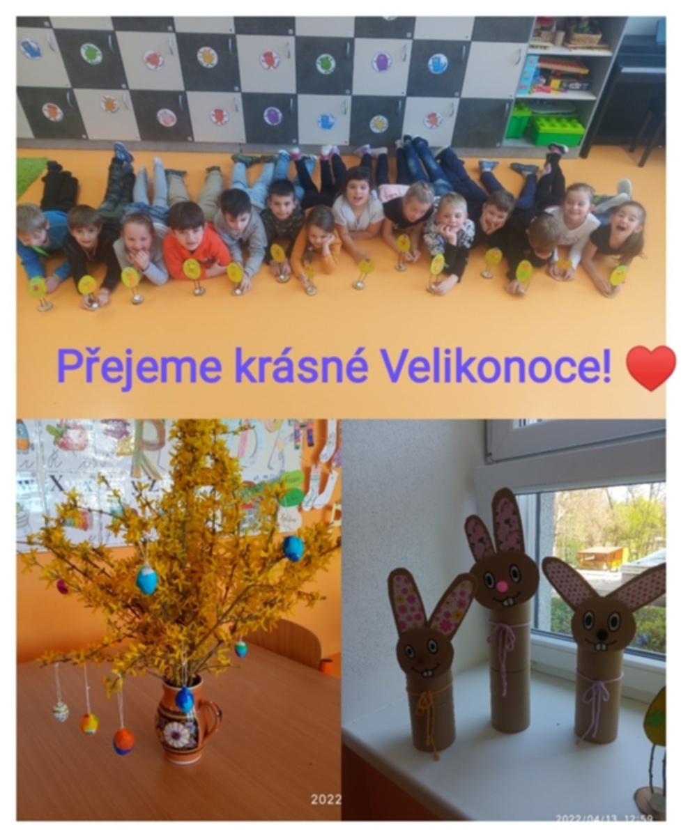 My, prvňáčci, přejeme všem z celého ❤️ veselé, krásné a zdravé Velikonoce! Ve škole jsme splnili vše, co jsme potřebovali. Ted už jen doma pomoci mamince a tatínkovi, upéct Jidášky, zalévat řeřichu, dát si ve čtvrtek něco zeleného (pozor, zelené bonbony ne! 😉) a třeba ještě nabarvit vajíčka, uplést pomlázku a upéct beránka. Ale hlavně, musíme být se svou rodinou a užít si společně jarní dny. 🌼