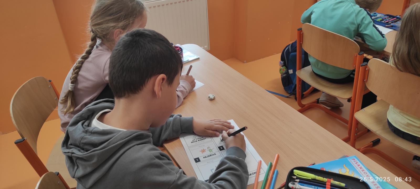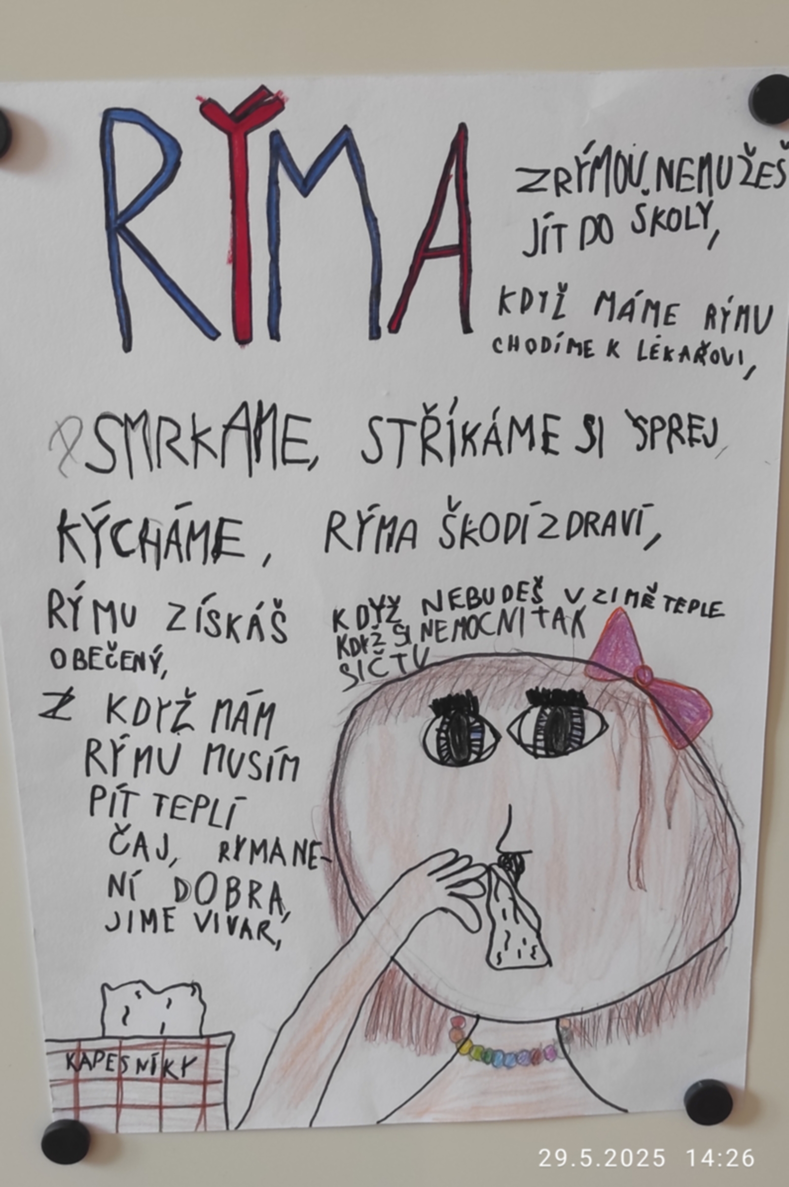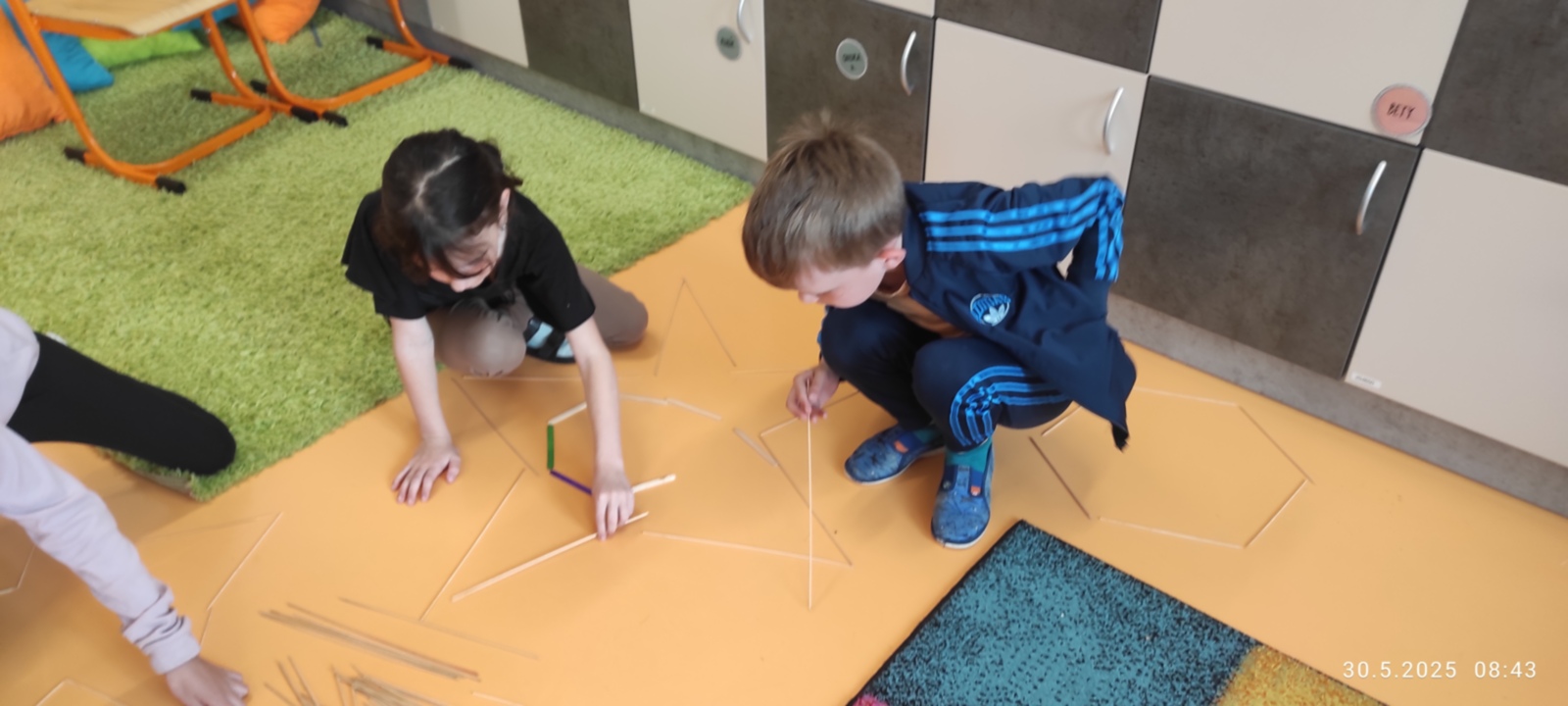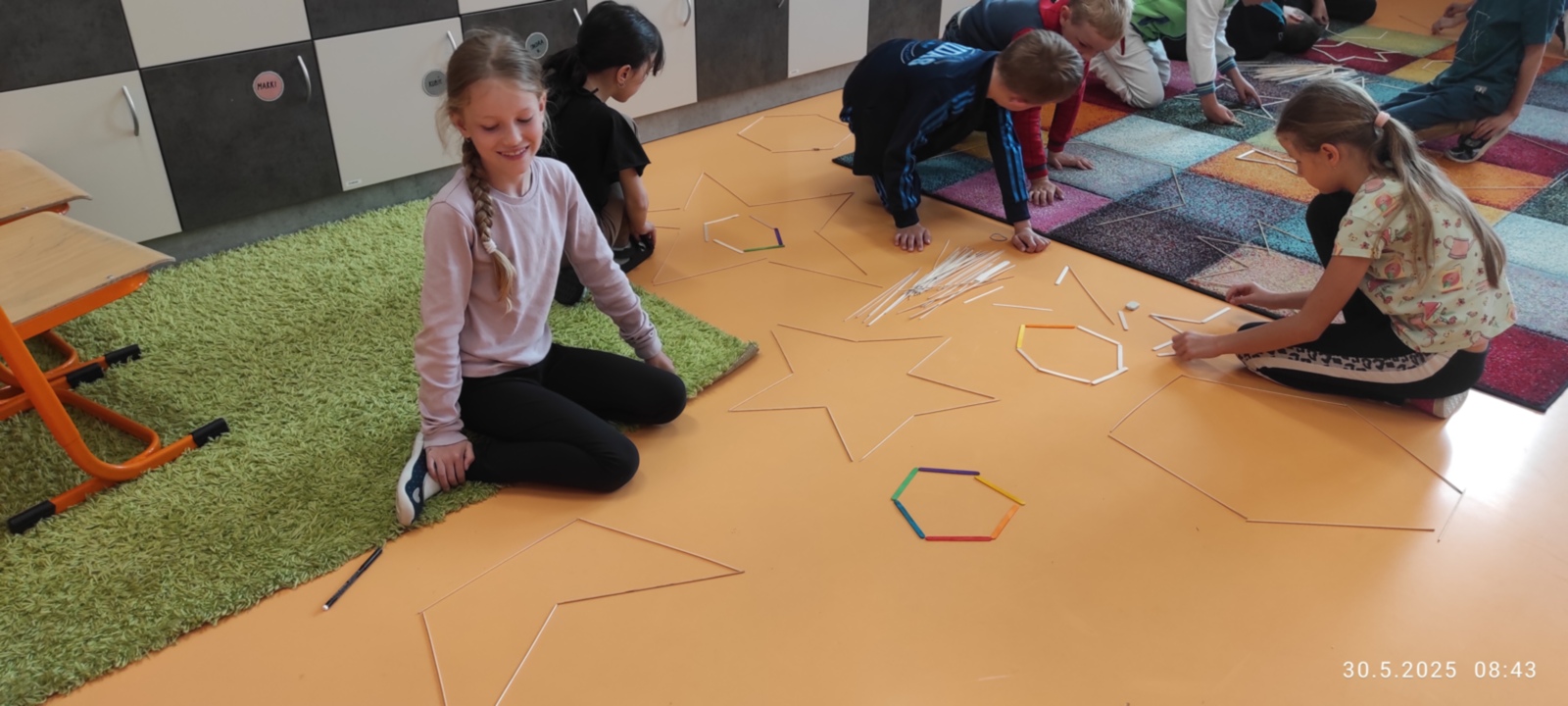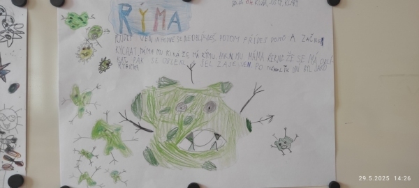 U druháčků se pořád pracuje. Naše dny nejsou jen o učení, ale i o komunikaci a naslouchání. Nacvičujeme na Radovánky, dolaďujeme choreografii. Ve čtení jsme si zahráli čtenářskou hru a také připravujeme program na den s rodiči s opékáním. Nechybí představení dovedností spolužáků, tentokrát to byla ukázka hry na klavír. Vytvořili jsme si v rámci učiva mini knihu Moje ráno a v prvouce plakáty o rýmě. V geometrii jsme si vyzkoušeli tvořit mnohoúhelníky a počítali vrcholy a strany těchto útvarů.