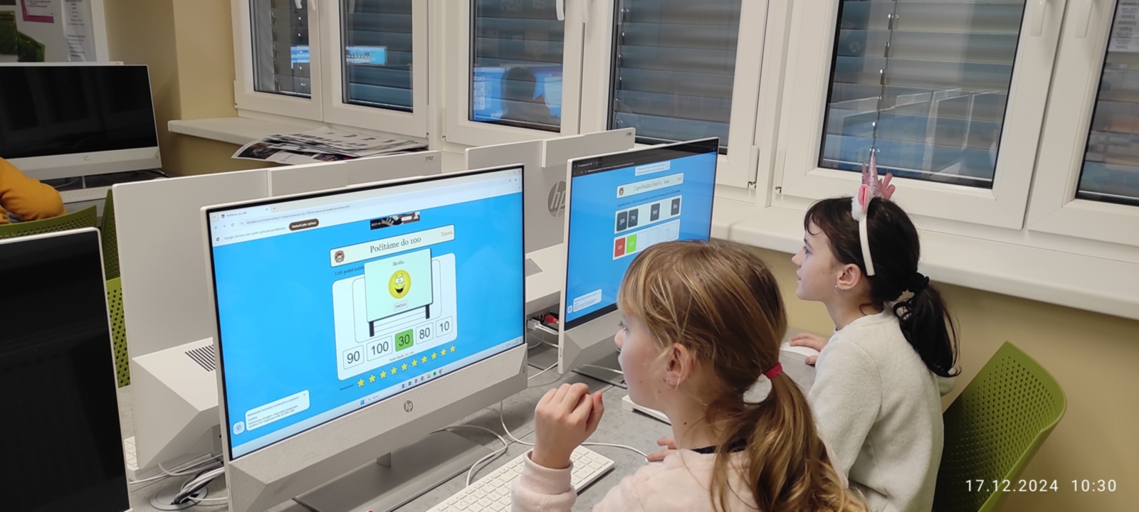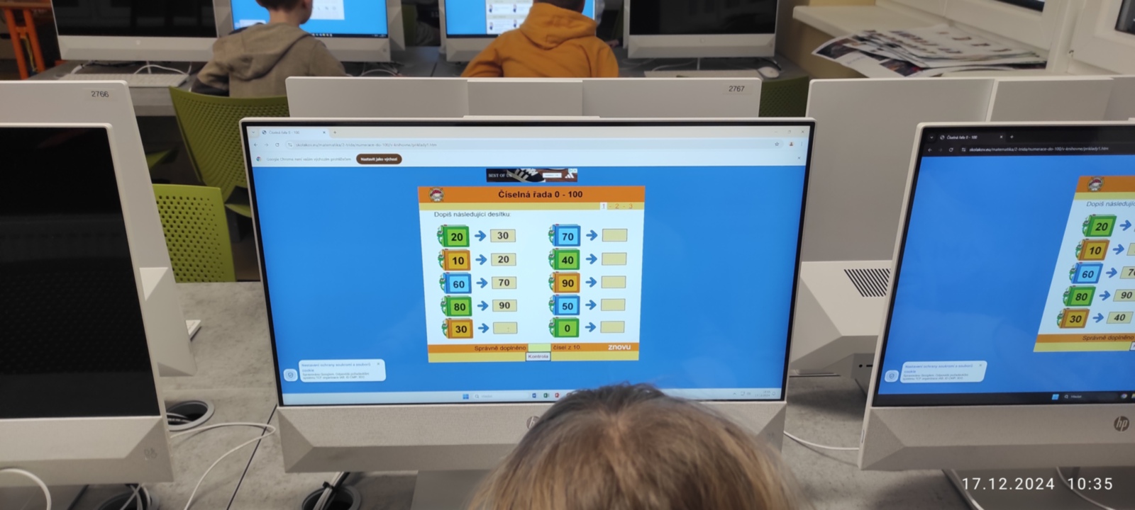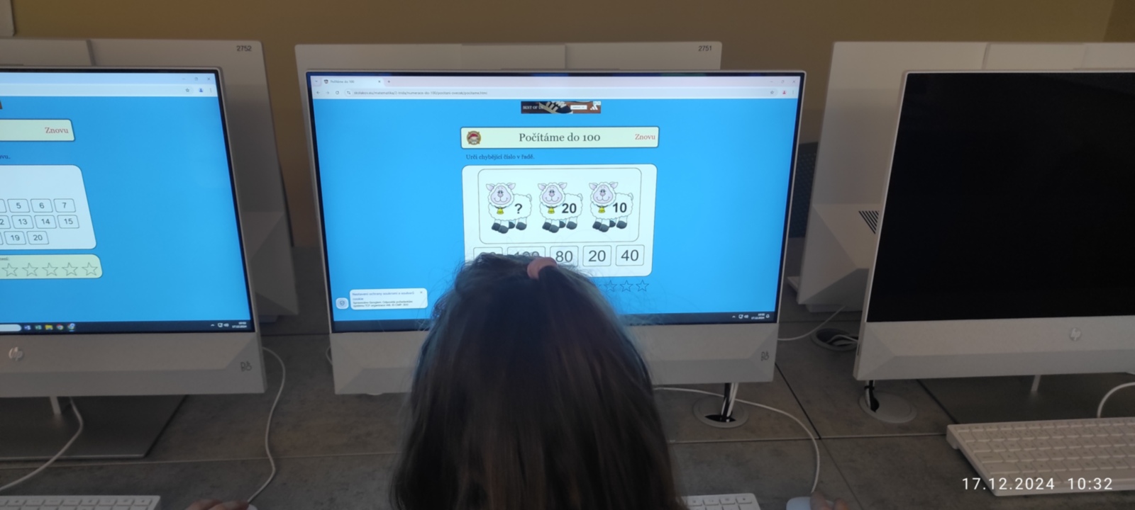 Druháci si dnes poprvé zkusili výuku na počítačích. Procvičili učivo matematiky, českého jazyka a prvouky, někteří si troufli i na angličtinu pro třeťáky. Šlo jim to výborně.