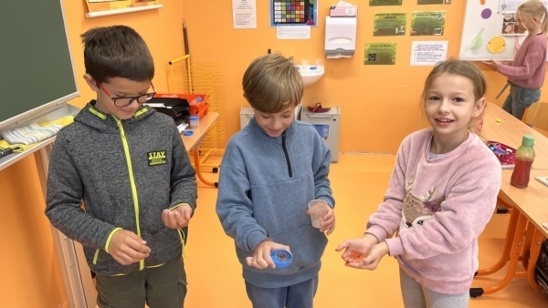 Tento týden byl nejen podzimně barevný, ale i plný projektů. S Pokustónem jsme zjistili, co se stane s gumovým medvídkem, když ho necháme do druhého dne v tekutině, jak krásně nám narostl!