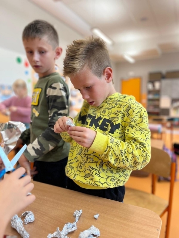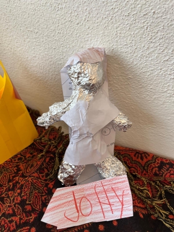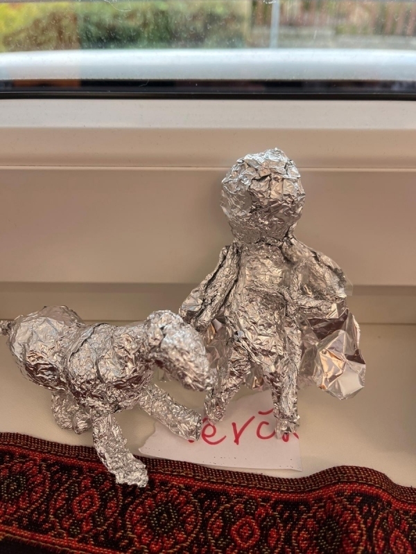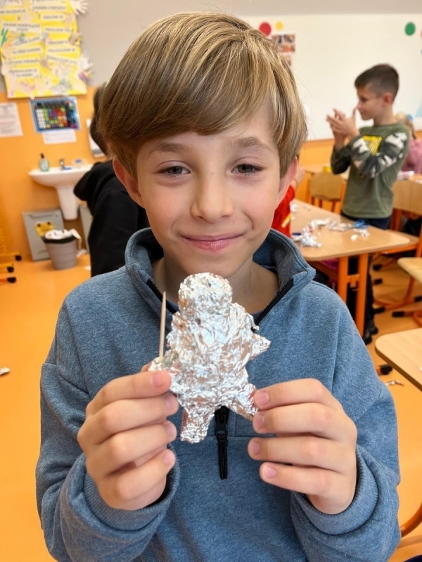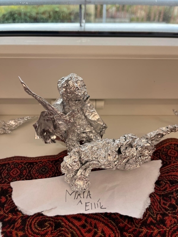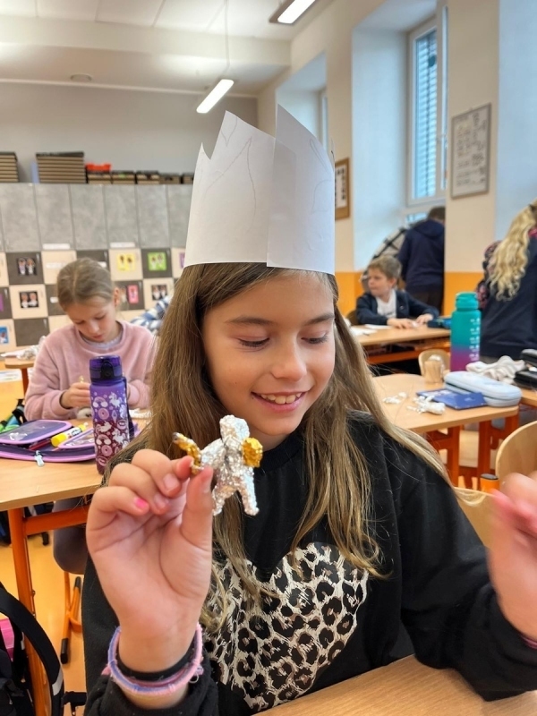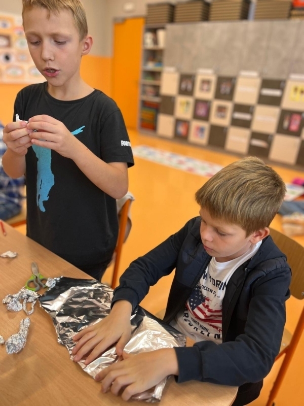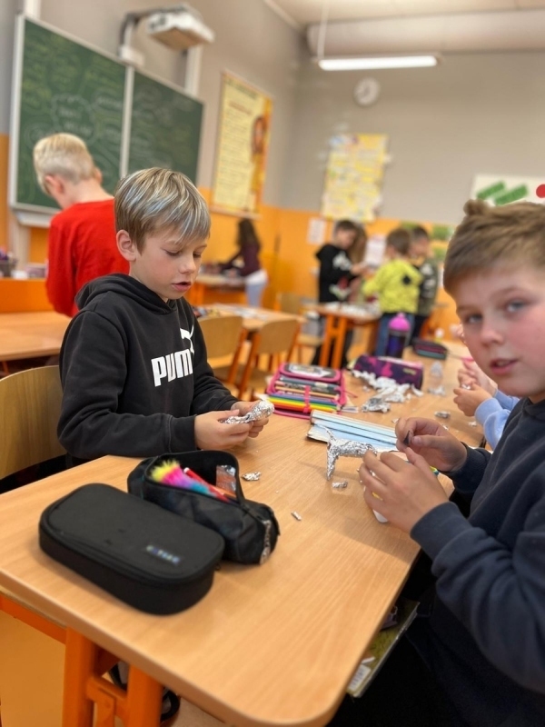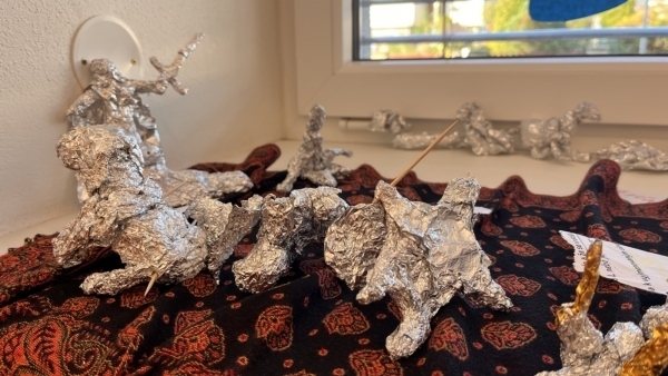 V dílnách psaní jsme se pak proměnili na Václava a představovali se ostatním, vše pak i sepsali a prezentovali ostatním. Velkou výzvou a pomyslnou tečkou za nabitým dnem byla tvorba sochy Václava a jeho koně z alobalu. Dílo se vydařilo a dělá nám radost.