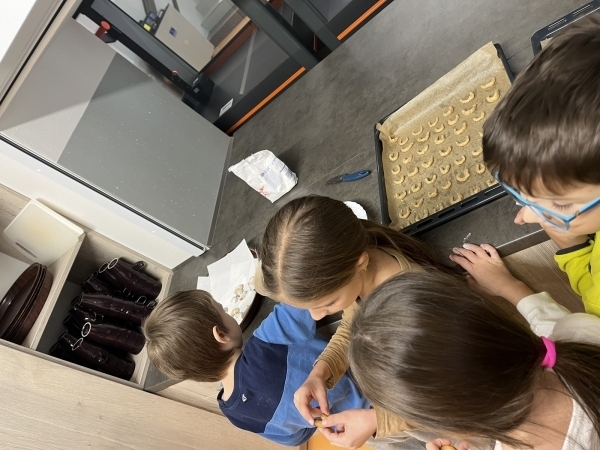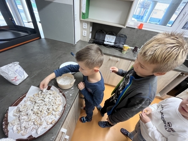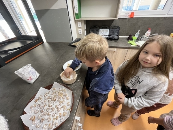 Už se nemůžeme dočkat, a tak odpočítáváme dny do Štědrého dne. Abychom si čekání zpříjemnili, upekli jsme si dneska jedno z nejoblíbenějších cukroví - vanilkové rohlíčky. Vůně se dostala do všech koutů školy. Světýlky jsme si vyzdobili třídu a teď už jen čekat na Ježíška. Už se jen párkrát vyspíme a je tady.