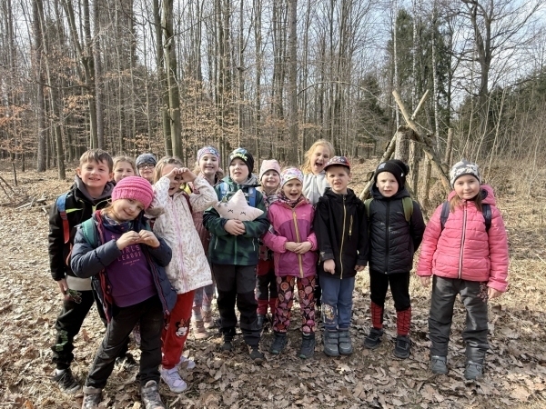 V minulém týdnu nám sluníčko dovolilo vyrazit ven, a to rovnou dvakrát. Udělali jsme si vycházku do lesa, kde jsme si zopakovali, jaké stromy známe, tvořili jsme písmena a příklady z přírodnin, ale také jsme stavěli domečky pro lesní skřítky a broučky... Venku jsme si společně s 1. A užili i tělocvik. V českém jazyce jsme se naučili nové písmeno - Ř. Taky jsme se seznámili s pranostikou "Na svatého Řehoře, čáp letí přes moře..." U ptáčků jsme zůstali i v prvouce. Popisovali jsme jejich stavbu těla a učili se o tom, kteří ptáci se k nám vracejí z teplých krajin...